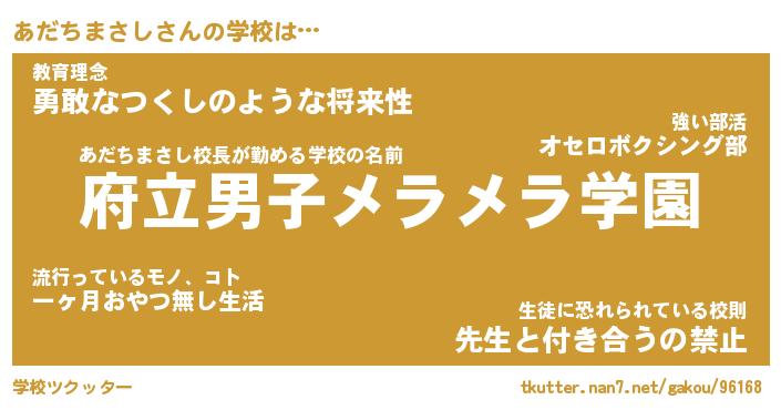 | ヒーロー風カッコイイあだ名 | 『スーパーアダチマサシ』『天弓騎士アダ』 |