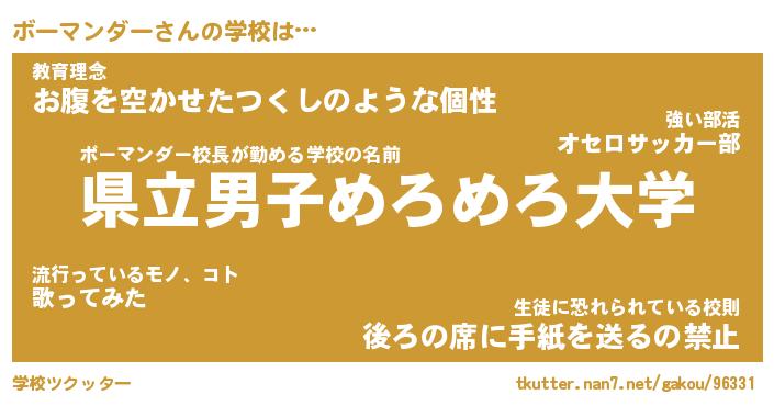 | ヒーロー風カッコイイあだ名 | 『スーパーボーマンダー』『幻影騎士ボー』 |