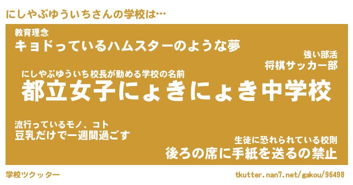 | ポケモン風あだ名 | 『ニシチュウ』『ニシヤダネ』 |