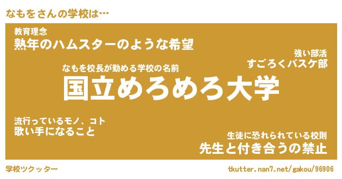 | 意味不明あだ名 | 『ペロリンなもを』『なもをフォーエバー』 |