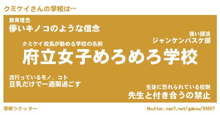 | ファンタジー風あだ名 | 『クミフェル』『エターナルクミケイー』 |