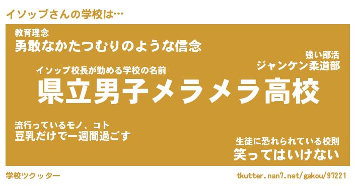 | 肩書あだ名 | 『イソップ社長』『イソップ総理大臣』 |
