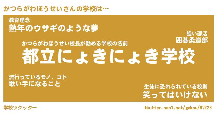 | 男性向けラノベタイトル風あだ名 | 『かつらがわほうせいの憂鬱』 |