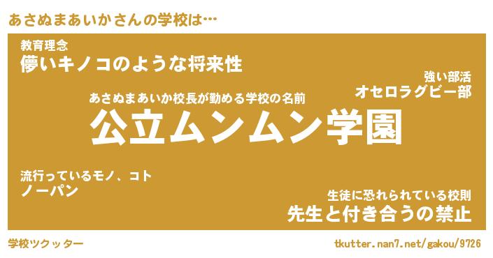 | 男性向けラノベタイトル風あだ名 | 『あさぬまあいかの憂鬱』 |