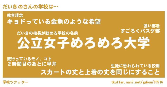 | 肩書あだ名 | 『だいきの御曹司』『だいきの国家主席』 |