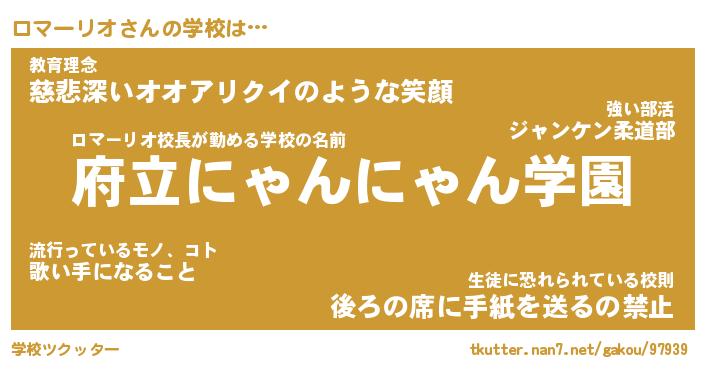 | ヘコむあだ名 | 『ロマもー』『つくし』『ロマっぺ』 |