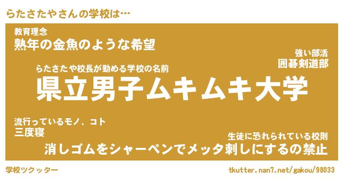 | 公立男子ムキムキ中学校は(略 …「」 | 10月03日 07:36 |