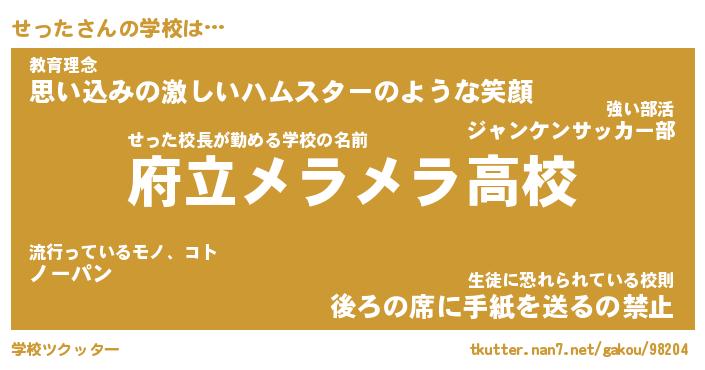 | ヒーロー風カッコイイあだ名 | 『スーパーセッタ』『ウルトラせったマン』 |