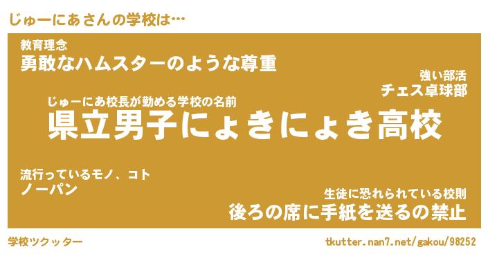 | ヘコむあだ名 | 『じゅにゅー』『なまこ酢』『じゅお』 |
