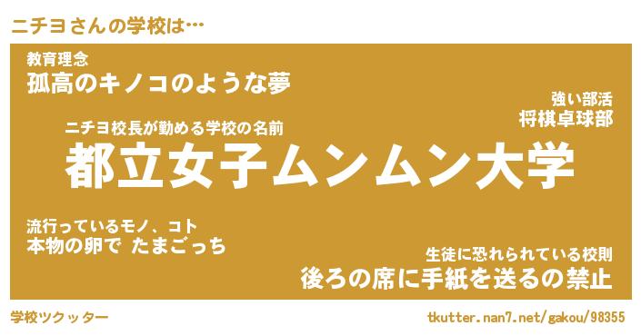 | ポケモン風あだ名 | 『ニチチュウ』『ニチヨダネ』 |