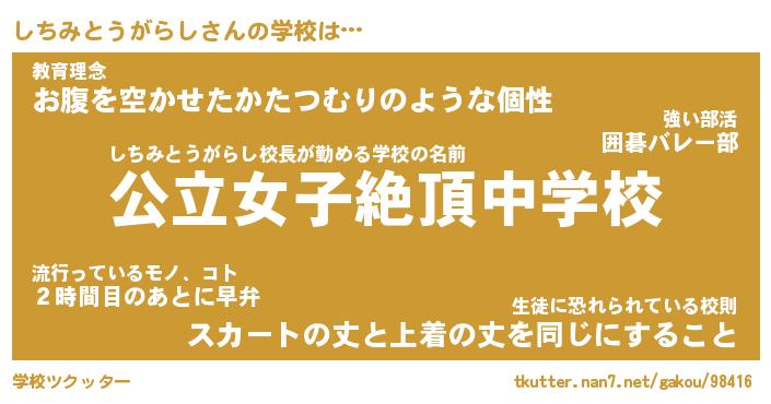 | ヘコむあだ名 | 『しちふぇ~』『酢こんぶ』 |