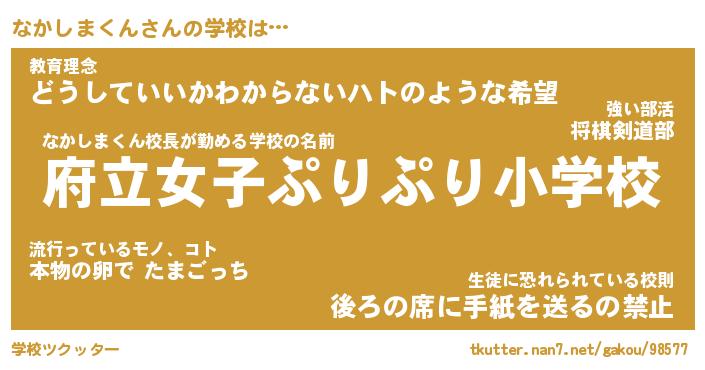 | ヒーロー風カッコイイあだ名 | 『スーパーナカシマクン』『天弓騎士ナカ』 |