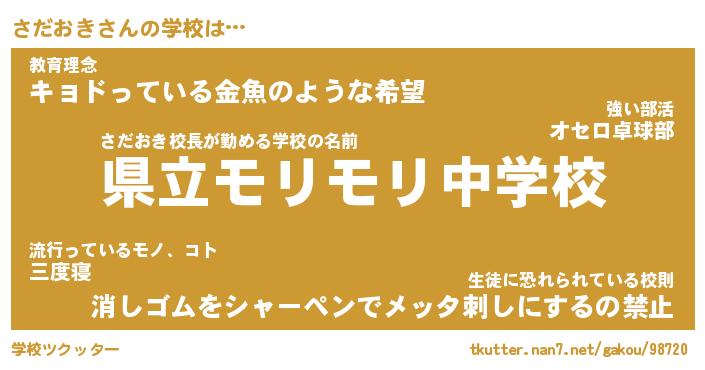 | 男性向けラノベタイトル風あだ名 | 『さだおきの憂鬱』 |