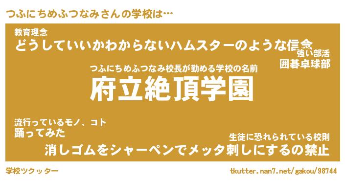 | 男性向けラノベタイトル風あだ名 | 『つふにちめふつなみの憂鬱』 |