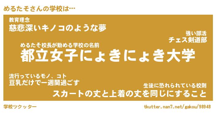 | 意味不明あだ名 | 『ペロリンめるたそ』『永久保存めるたそ』 |