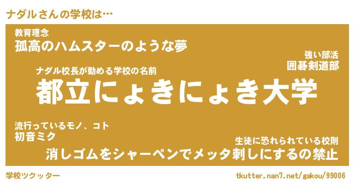| 肩書あだ名 | 『ナダル店長』『ナダル総理大臣』 |
