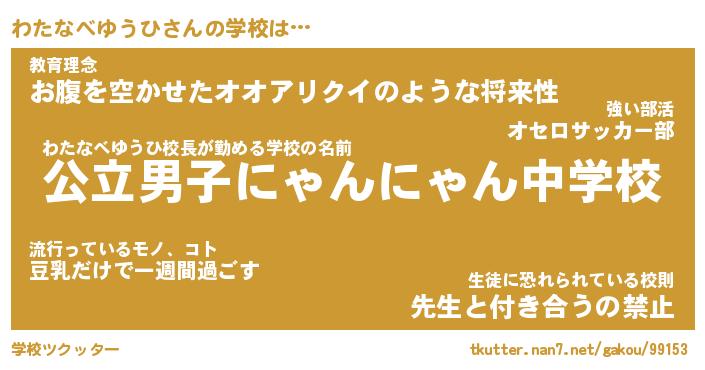 | ポケモン風あだ名 | 『ワタチュウ』『ワタナダネ』 |
