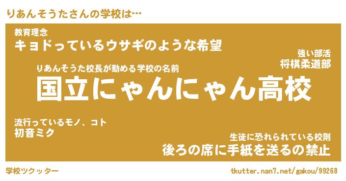 | 伝説のあだ名 | 『伝説のスナイパーりあんそうた』 |