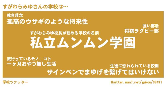 | 肩書あだ名 | 『すがわらみゆ店長』『すがわらみゆ先生』 |