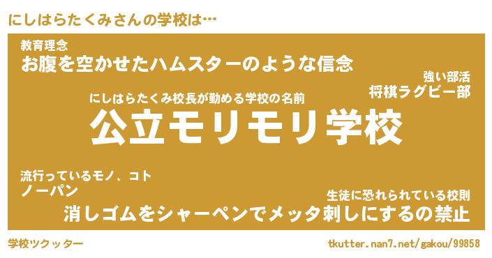 | 肩書あだ名 | 『にしはらたくみCEO』 |