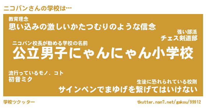 | 男性向けラノベタイトル風あだ名 | 『ニコバンの憂鬱』 |