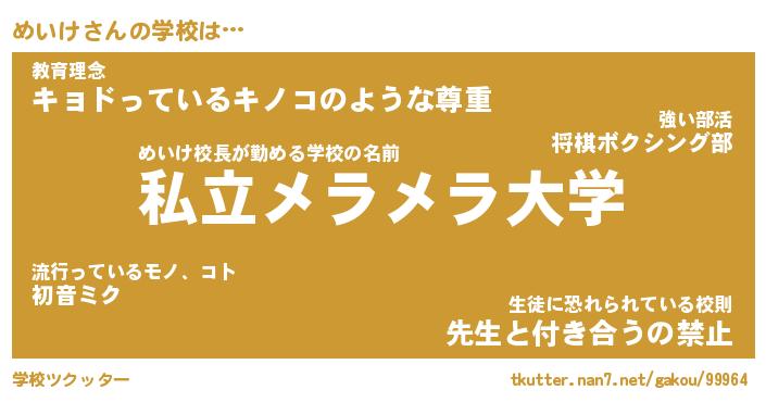 | 意味不明あだ名 | 『ペロリンめいけ』『めいけフォーエバー』 |