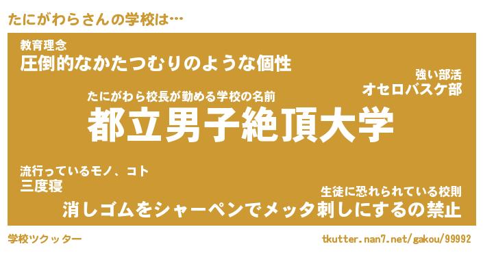 | ヒーロー風カッコイイあだ名 | 『スーパータニガワラ』『暗黒騎士タニ』 |