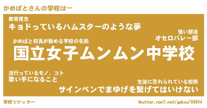 | 意味不明あだ名 | 『ペロリンかめぱと』『永久保存かめぱと』 |