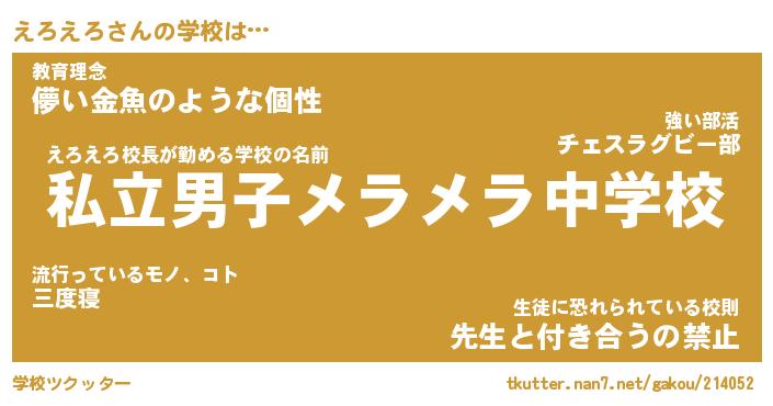 | 男性向けラノベタイトル風あだ名 | 『えろえろの憂鬱』 |