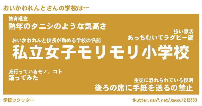 | 先生 | おいかわれんと先生が勤める学校名『府立肉球中学校』 |