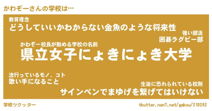 | 意味不明あだ名 | 『ペロリンかわぞー』『永久保存かわぞー』 |