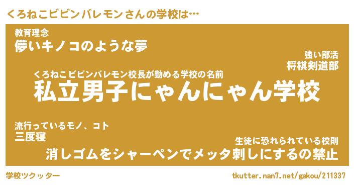 | 男性向けラノベタイトル風あだ名 | 『くろねこビビンバレモンの憂鬱』 |