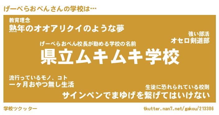 | 男性向けラノベタイトル風あだ名 | 『げーべらおべんの憂鬱』 |