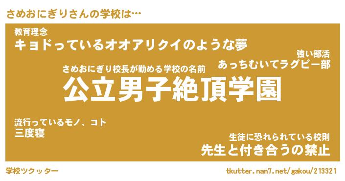 | 男性向けラノベタイトル風あだ名 | 『さめおにぎりの憂鬱』 |