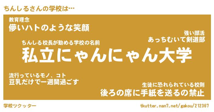 | ファンタジー風あだ名 | 『チンフェル』『エターナルチンシルー』 |