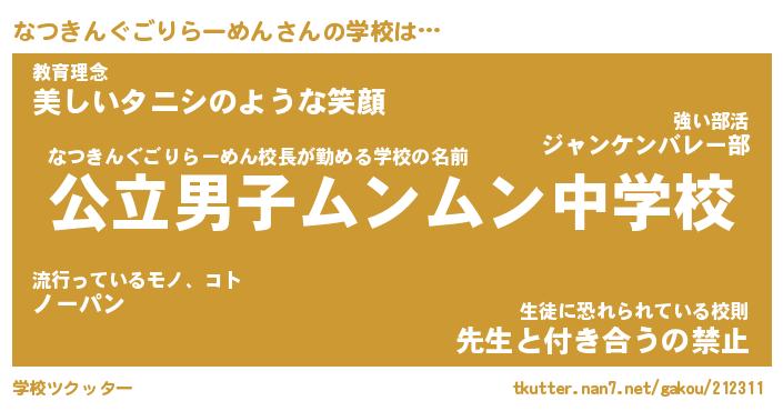 | ヒーロー風カッコイイあだ名 | 『スーパーナツキングゴリラーメン』 |