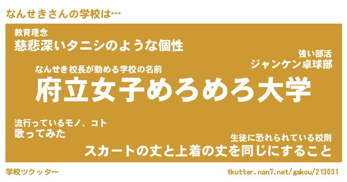 | 意味不明あだ名 | 『ペロリンなんせき』『永久保存なんせき』 |