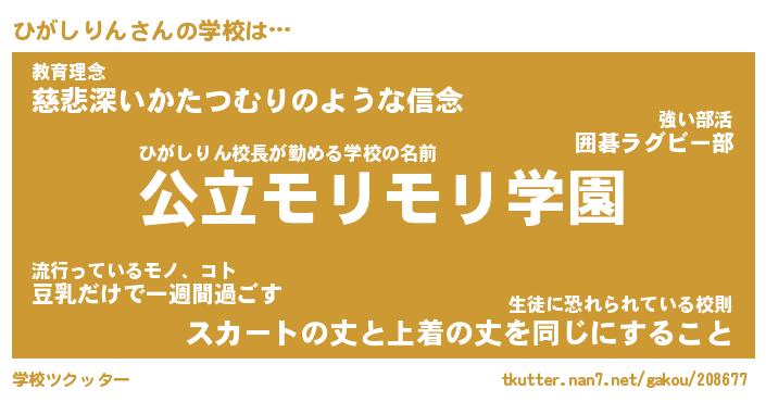 | 男性向けラノベタイトル風あだ名 | 『ひがしりんの憂鬱』 |