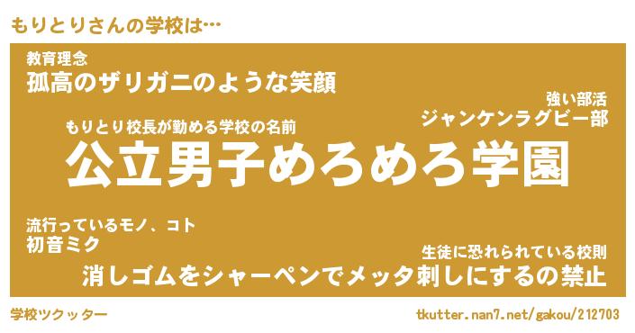 | 男性向けラノベタイトル風あだ名 | 『もりとりの憂鬱』 |