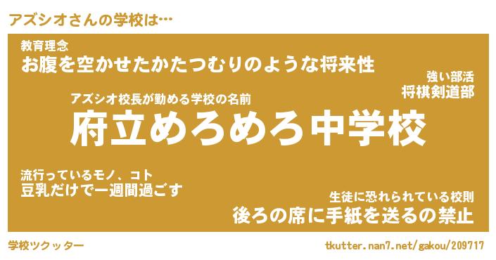 | 男性向けラノベタイトル風あだ名 | 『アズシオの憂鬱』 |