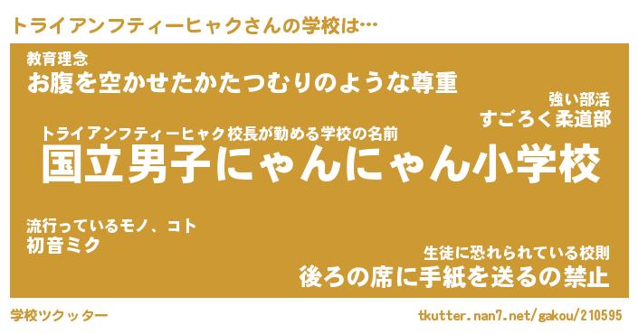 | ヒーロー風カッコイイあだ名 | 『スーパートライアンフティーヒャク』 |
