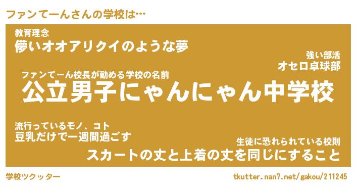 | 男性向けラノベタイトル風あだ名 | 『ファンてーんの憂鬱』 |