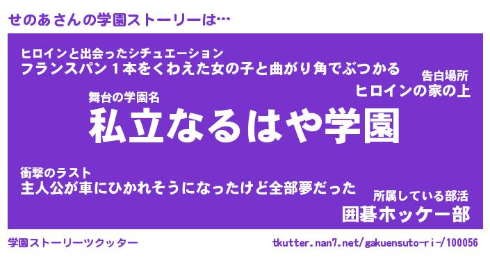 | 伝説のあだ名 | 『伝説のスナイパーせのあ』 |