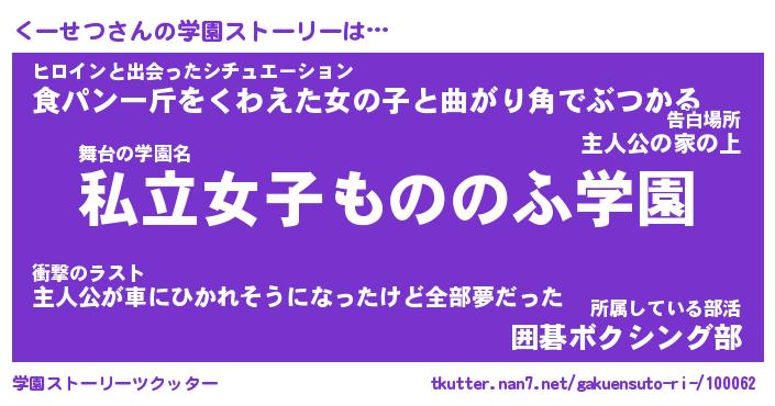 | 男性向けラノベタイトル風あだ名 | 『クーセツアートオンライン』 |