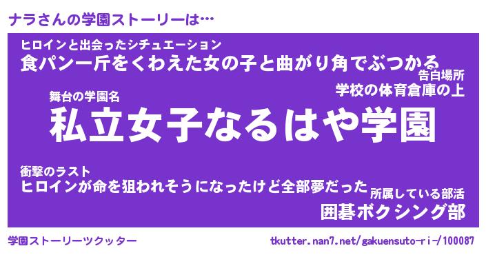 | 女子向けラノベタイトル風あだ名 | 『ナラ姫と円卓の騎士』 |