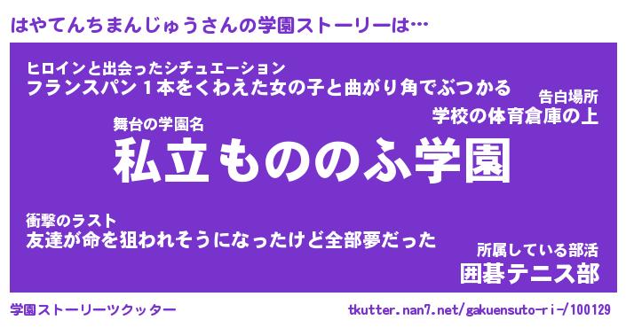 | 男性向けラノベタイトル風あだ名 | 『はやてんちまんじゅうの憂鬱』 |