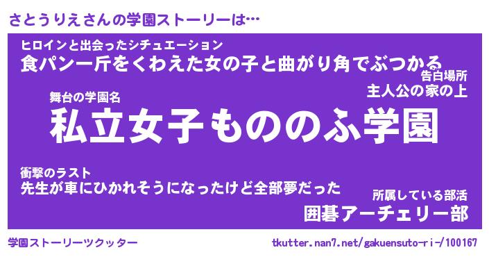 | 伝説のあだ名 | 『封印されし竜騎士さとうりえ』 |