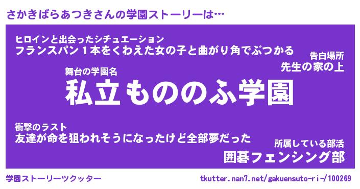 | 男性向けラノベタイトル風あだ名 | 『さかきばらあつきの憂鬱』 |