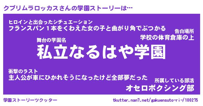 | 男性向けラノベタイトル風あだ名 | 『クプリムラロッカスの憂鬱』 |