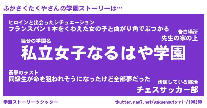 | 伝説のあだ名 | 『封印されしスナイパーふかさくたくや』 |